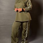 عرض سینه تونیک ۵٩ سانت یکطرف زیر بغل تا زیر بغل قد تونیک ٧۴ سانت قد شلوار ١٠٨ سانت دور ران ۶٨ سانت